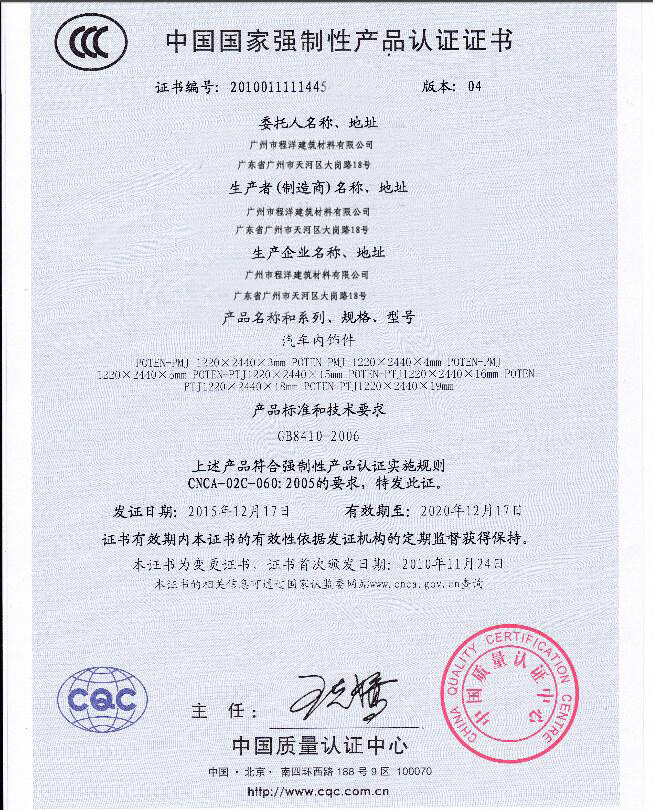 • 程洋pvc發泡板獲得綠色環保節能證書